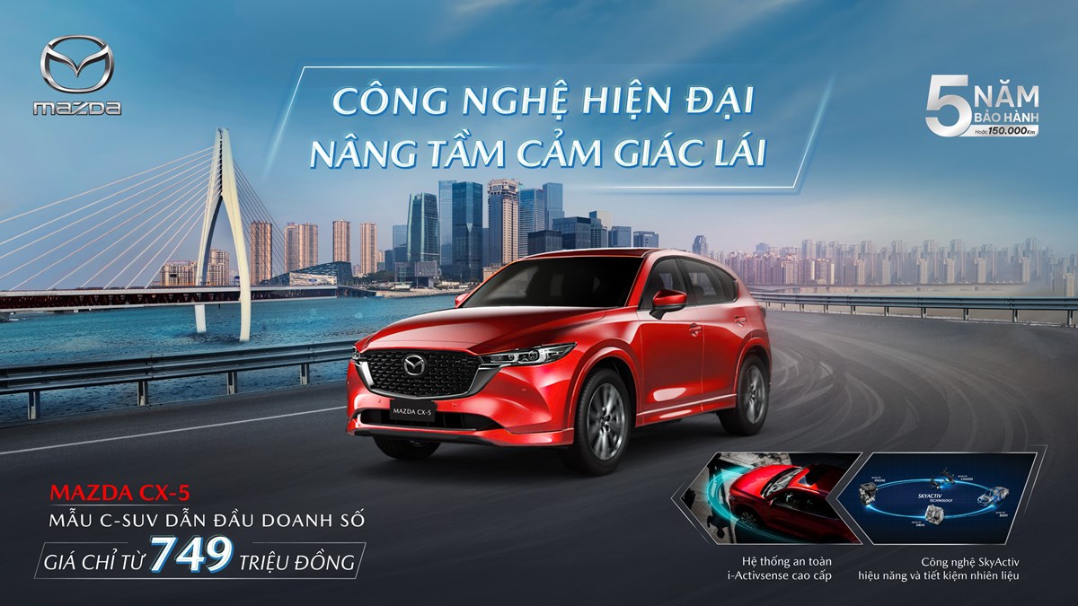 Mazda CX-5 mẫu C-SUV dẫn đầu doanh số ưu đãi đến 20 triệu cho phiên bản 2.5 Signature và đến 10 triệu cho phiên bản 2.0 Premium. Hiện tại mẫu xe này đang có giá dễ tiếp cận nhất phân khúc C-SUV chỉ từ 749 triệu. Quen thuộc với người Việt đến mức gần như trở thành tiêu chuẩn tham chiếu khi chọn mua SUV, Mazda CX-5 liên tục giữ sức hút bằng những giá trị cốt lõi; và đáp ứng đa dạng nhu cầu với nhiều phiên bản cùng 2 tùy chọn động cơ, qua đó khách Việt dễ dàng tìm được phiên bản CX-5 phù hợp nhất với gia đình mình.